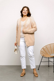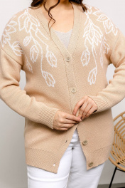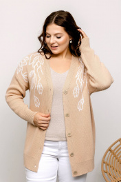 Бежевый кардиган с магнолиями и рукавами на ластик Romgil РВ0031-ХЛ2 крем-брюле,молочный