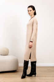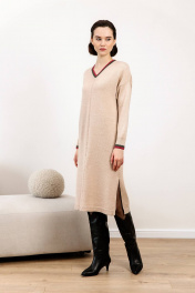 Платье прямого силуэта. Платье очень мягкое и приятное к телу, вывязано переплетением "кулирная гладь". Рукав втачной до уровня локтя. Вырез горловины V-образный обработан накеттлёванной бейкой._x000D_