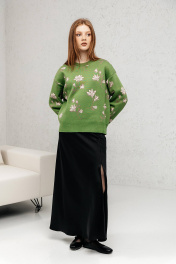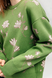 Джемпер трикотажный с жаккардовым цветочным узором Romgil РВ0141-ХМ5 зеленая_оливка