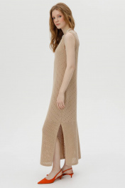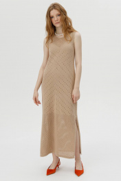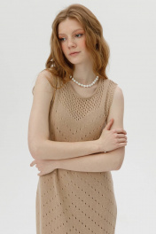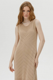 Это элегантное вязаное платье станет изысканным дополнением вашего гардероба. Выполненное из мягкой пряжи с ажурным узором, оно имеет круглый вырез и боковой разрез, придающий образу легкость и женственность. Платье идеально подходит для создания стильных и комфортных образов как на каждый день, так и для особых случаев. Особенности: Материал: 100% натуральная пряжа Фасон: без рукавов, круглый вырез, боковой разрез Длина: до середины икры Подходит для любого сезона Это платье станет отличным выбором для тех, кто ценит комфорт и стиль.