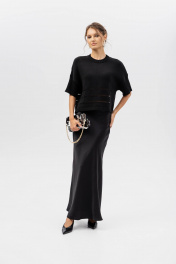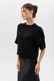 Создайте стильный и женственный образ с этим роскошным джемпером, который идеально подойдёт как для деловых встреч, так и для вечерних выходов. Описание джемпера: Цвет: классический чёрный, еще есть в (темно-синем цвете), который легко сочетается с любыми аксессуарами и обувью; Дизайн: укороченный крой с короткими рукавами и оригинальными ажурными вставками на уровне талии, добавляющими изюминку и лёгкость образу; Материал: мягкая и приятная на ощупь трикотажная ткань, которая обеспечивает комфорт и сохраняет форму; Универсальность: подходит для создания как повседневных, так и вечерних луков. Уход за изделием: Рекомендуется стирка в деликатном режиме при температуре до 30°C. Не использовать отбеливатели. Сушить в расправленном виде, избегая прямых солнечных лучей.