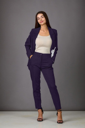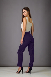 Брюки женские из костюмной ткани. Посадка- средняя. Слегка заужены к низу, с наклонными карманами и регулируемым резинкой поясом. Застегиааются на молнию по переду и одну пуговицу.