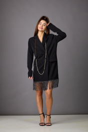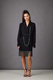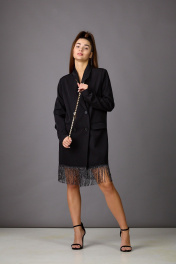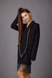 Представляем жакет женский из костюмной ткани на подкладке,который станет незаменимым спутником в вашей жизни. Лаконичный прямой силуэт жакета с двубортной застежкой прекрасно сочетается с бахромой. По переду- прорезные карманы с клапанами. Воротник-с отложными лацканами пиджачного типа. Рукава двухшовные, длинные. Жакет можно носить, как самостоятельно, так и в сочетании с платьями- комбинациями, юбками, брюками. Длина жакета 44-48р - 82см +10см бахрома, 50-54р- 84см+10см бахрома