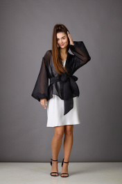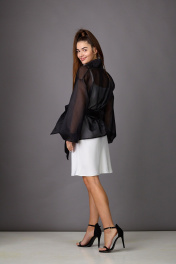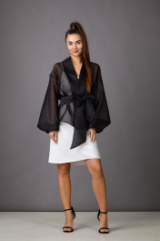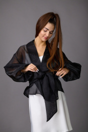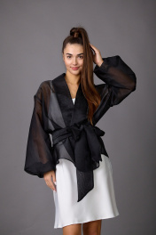 Прозрачная блуза из органзы, немного расширена к низу, с планкой по горловине и бортам. Рукава-балон. Завязывается на пояс. Незаменимый наряд на праздники, вечеринки, корпоратив. Великолепно сочетается с комбинациями, юбками,брюками. Скрасьте момент с Rosheli!