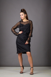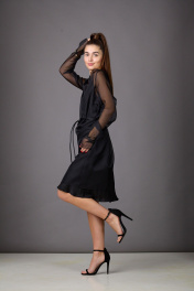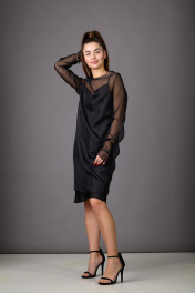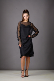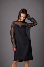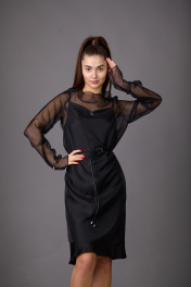 Легкость и шик -идеальное коктейльное платье! Верхнее прозрачное платье из вуали с удлиненными рукавами, длину рукавов можно отрегулировать любыми браслетами. В сочетании с нижним платьем из атласа создаст эффектный образ для прекрасного настроения! Крой по косой нижнего платья обеспечит комфортную посадку на фигуре.