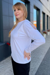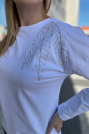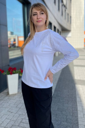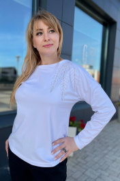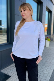 Трикотажный женский джемпер с вышивкой и бусинами Rumoda 2151 белый