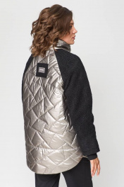 Комплект из 3 предметов одежды. Куртка прямая с фигурным низом, из двух видов ткани. Есть карманы , Воротник стойка. Застежка на молнию. Брюки слегка заужены к низу, талия на резинке. Карманы вставлены в рельеф передней половинке. Джемпер прямой, рукав втачной. Внизу собран на манжет.