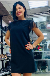 Платье выходное, нарядное. Имеет оригинальную отделку бахромой по пройме изделия.