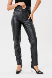 Брюки из эко-кожи с карманами на каждый день PRATA wear S004 черный
