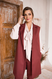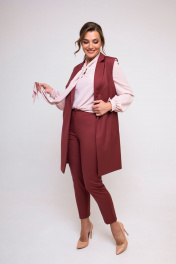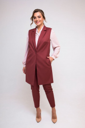 Костюм женский демисезонный из текстиля с жилетом и классическими брюками SandyNa 130560 чилийский_перец