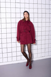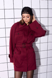 Платье прямого силуэта, на подкладке, выполнено из костюмной ткани. Рукав реглан с плечевой накладкой, по низу рукава паты и пуговицы. Платье на потайной застежке молнии и пуговицы. По переду изделия расположены карманы с клапаном. На спинке отлетная кокетка. В комплекте к платью идет пояс. Замеры: длина: 83см длина рукава: 80см