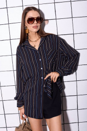 Рубашка прямого, свободного силуэта. Рукав спущенный, прямой, длинный на манжете. Воротник рубашечного типа. Замеры: длина: 74см длина рукава: 62см