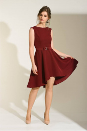 Платье для торжеств с перьями и полусолнцевой юбкой Sharm-Art 614 /3 бордовый