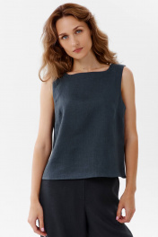 Льняная женская блузка из коллекции SHLOMO выполнена из приятного к телу льна. Крой свободный, без застежки. Вырез горловины лодочка. Фактура материала зернистая