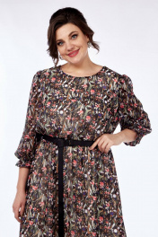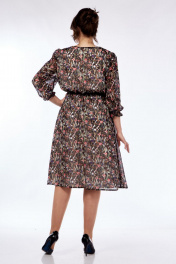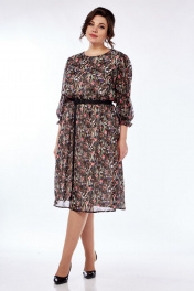 Силуэт полуприлегающий, расширенный к низу. Рукава втачные, одношовные, со сборкой по окату. Внизу рукава выполнена сборка на тонкую резинку. Длина рукава 50 см. Горловина закруглённая. Платье на подкладке. В комплекте с платьем идёт пояс. Длина платья по спинке 114 см. Платье выполнено из шифона, подкладка - из лёгкой ткани плательной группы 60 размер – ПОГ 64, ПОБ 70