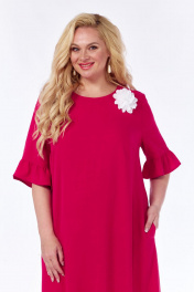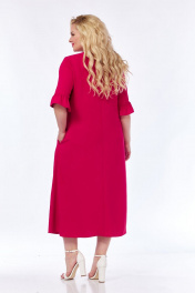 Силуэт полуприлегающий, расширенный к низу. Рукава втачные, одношовные. По низу рукавов пришиты узкие оборки со сборкой. Длина рукава 33 см. Горловина закруглённая, на обтачке, которая закреплена отделочной строчкой. Перед с нагрудными вытачками. Спинка со средним швом. В боковых швах платья на уровне линии бёдер, выполнены потайные карманы. Длина платья по спинке 121см. Платье выполнено из лёгкой плательной ткани. Замеры 60 размера – ПОГ 64, ПОБ 70 , ширина рукава по низу 21