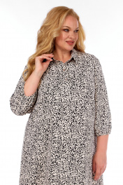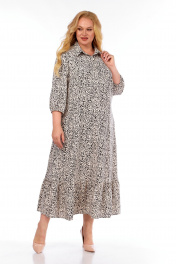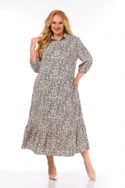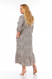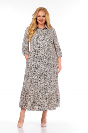 Силуэт полуприлегающий, расширенный к низу. Рукав втачной, одношовный, внизу выполнена сборка на тонкую резинку. Длина рукава 46 см. Горловина с отложным воротником на стойке, рубашечного типа. Перед с нагрудными вытачками. По центру горловины переда выполнена отрезная планка с застёжкой на две пуговицы. Спинка со средним швом. Низ платья декорирован отрезной оборкой, по которой выполнена сборка. Длина платья по спинке 135см. Платье выполнено из лёгкой плательной ткани. Обмеры 60 размера – ПОГ 65, ПОБ 75, длина изделия 129, рукава 46