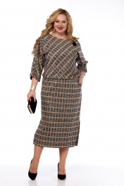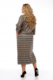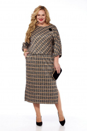 Силуэт полуприлегающий. Рукав цельнокроеный, «летучая мышь». Низ рукава драпируется патой с застёжкой на пуговицу. Длина рукава от горловины 55см. Горловина закруглённая, на обтачке. По линии талии платье отрезное. По подрезу выполнена сборка на резинку. Верхняя часть платья на подкладке, фиксирующей напуск. По бокам нижней части переда выполнены карманы с косой линией входа. Внизу по боковым швам платье с разрезами. Длина платья 121 см. Платье выполнено из трикотажного полотна. 60 размер - ПОБ 64