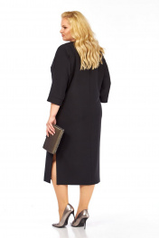 Силуэт полуприлегающий. Рукав цельнокроеный, «летучая мышь». . Длина рукава от горловины 57 см. Горловина закруглённая, на обтачке. По центру переда застрочен защип (стрелка). Спинка со средним швом. Внизу боковых швов выполнены разрезы. Длина по спинке 116 см. В Боковых швах карманы. Ткань — костюмно-плательная.