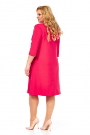 Силуэт полуприлегающий, расширенный к низу. Рукав втачной, двухшовный. Внизу переднего шва рукавов выполнены разрезы. Длина рукава 43 см. Горловина закруглённая, на обтачке. Перед с нагрудными вытачками. Вверху переда застрочены 2 горизонтальные односторонние складки. Верхняя складка слева декорирована пришивным металлическим элементом. Спинка со средним швом. На уровне бёдер в боковых швах выполнены потайные карманы. Длина платья 103 см. Платье выполнено из ткани костюмно-плательной группы. в 58 размере ПОГ 62 ПОБ 70