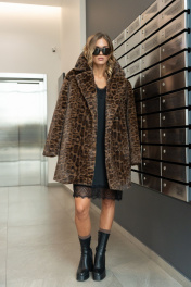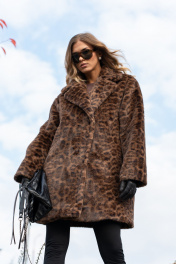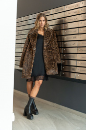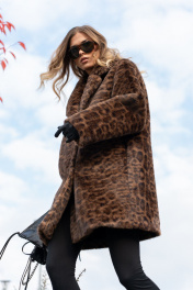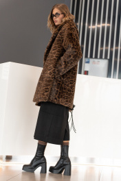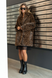 Пальто женское ( шуба ) из эко-меха в анималистичном принте "леопард", прямого кроя, на поливискозной подкладке. Карманы в боковых швах. Воротник с отложным лацканом. Линия плеча слегка спущена, рукав прямой. Застежка двухбортная на пришивных кнопках. Температурный режим до -5 °С. Длина по центру спинки 85 см. Длина рукава от горловины 77см. Размер 42-44-46: Объем в области груди 116-120-124 см. Объем в области бедер 116-120-124 см. Размер 48-50-52: Объем в области груди 128-132-136 см. Объем в области бедер 128-132-136 см.