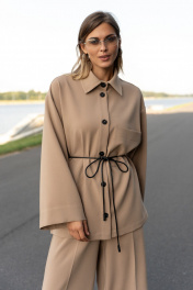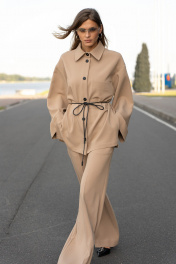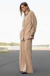 Брюки в цвете "Camel" прямого свободного силуэта. Пояс на резинке, по переду боковые наклонные карманы. На поясе декор в виде нашивки с лого. Длина брюк по боковому шву с поясом 108 см. Параметры брюк в готовом виде в 44 р.: обхват талии +-66 см (с резинкой ), обхват бедер 108 см.