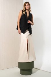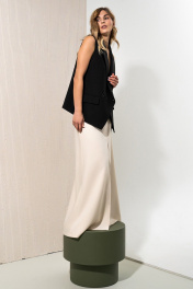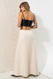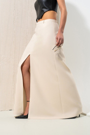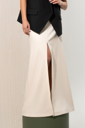 Актуальная юбка-миди, расклешенного силуэта к низу, с разрезом впереди. Застежка - потайная молния в среднем шве задней части юбки. Пояс стабильный с настроченными шлевками. Модная юбка-миди позволит выглядеть женственно и стильно, одновременно уместна в офисе, комфортно прогуляться по городу и сходить на свидание. Длина юбки по боковому шву с поясом 105 см.