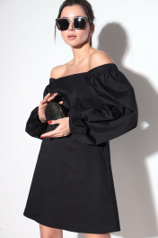 Платье женское , отрезное по талии. Вырез горловины прямой. Рукав обьемный, сверху на резинке, может опускаться вниз, открывая плечи. По низу рукава резинка. Застежка - потайная тесьма молния в среднем шве заднего полотна изделия. Юбка в изделии свободного кроя, А-образного силуэта. Великолепное платье для стильных и модных девушек. Длина платья от талии 50 см. Длина рукава от горловины 63 см.