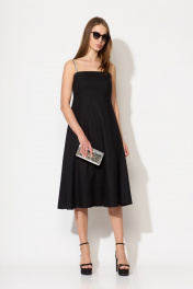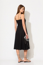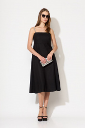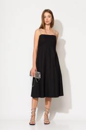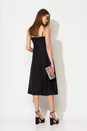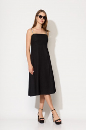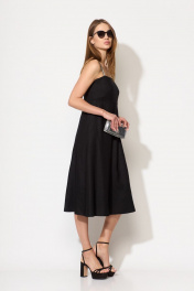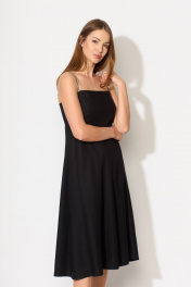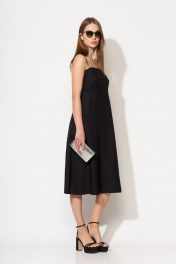 Стильное черное платье-бандо, выполнено из льняной ткани, мягкой и приятной на ощупь. Изделие на хлопковой подкладке. Платье отрезное выше линии талии, верхняя часть платья прилегающего силуэта с нагрудной вытачкой, нижняя часть расширенна к низу. В среднем шве спинки потайная молния. Карманы в боковых швах. Модель с регулируемыми, тонкими бретелями, декорироваными стразами, которые придают изделию шикарный блеск. Лаконичное и безупречное платье-бандо является прекрасным вариантом как для летнего отдыха, так и для торжественного случая. Длина платья от плечевой точки =-114 см. Длина по боковому шву 95 см. Изделие подходит на рост 162-174 см.с