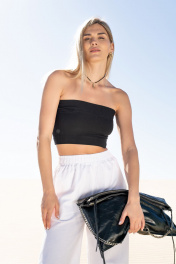 Кроп-топ из трикотажного полотна в рубчик, облегающего силуэта. Этот бесспорный "must have" в гардеробе каждой девушки, станет незаменимой базой для многих образов. Длина топа по центру переда 21 см.