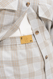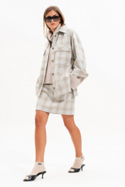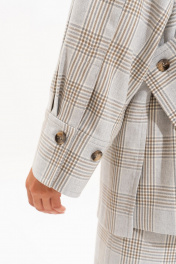 Стильная рубашка свободного, прямого силуэта в модном клетчатом принте. Впереди накладные карманы с клапанами. Рукав на спущенной пройме, с притачной манжетой, застегивающейся на 2 пуговицы ( вторая пуговица служит для регулирования ширины манжета ). В боковых швах разрезы и пуговички, на которых крепится съемный хлястик. Воротник стояче-отложной с отрезной стойкой. Трендовый комплект из клетки - это сочетание современных модных акцентов и функциональности, идеально вписывается как в деловые, так и в повседневные образы. Длина рубашки по спинке 72 см. Длина плеча 19 см. Длина рукава от спущенной проймы 52 см. Параметры рубашки в готовом виде в 44-48 р.: обхват груди 118 см, обхват бедер 118 см.
