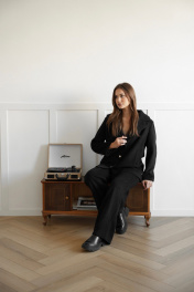 Брюки прямого кроя сверху на резинке без карманов из теплой мягкой ткани. - Только деликатная стирка 40 градусов - Не использовать отбеливатели