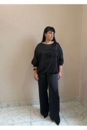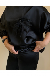 Блузка котрую можно носить как в повседневной жизни, так и при наличии дополнительных акссесуаров она отлично подойдет для праздничных мерроприятий. На рукавах и внизу блузки вставлена резинка, что позволяет носить ее в удобной для Вас длинне.