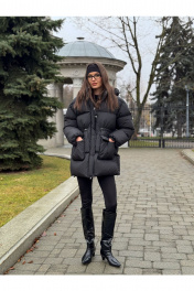 Зимняя куртка оверсайз кроя со спущенной линией плеча, застежкой на молнии, кулисой и накладными карманами. Длина: 80 см, длина рукава от воротника: M (44) - 75 см, L (46) - 76см, XL(48) - 77см, ширина на уровне груди: M (44) - 63 см, L (46) - 64см, XL(48) - 65см