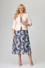 Платье - шифон, жакет - плательная ткань. В размерах 54,56,58 : Длина платья – 124 см, жакета – 55 см ,длина рукава жакета – 47 см. В размере 60 : Длина платья – 125 см , длина жакета – 57 см , длина рукава жакета – 47 см. Наименование измерения 164 100 104 108 112 116 120 отклонения см р.50 р.52 р.54 р.56 р.58 р.60 (+/-) см 1 2 3 4 5 6 7 8 9 ЖАКЕТ: Длина изделия по спинке 54 54 55 55 55 58 (+/-) 1 см Длина рукава 48 48 48 48 48 48 (+/-) 1 см Ширина спинки 1/2 20,3 20,3 21 21 21 22,3 (+/-) 0,5 см Ширина по линии груди 1/2 52 54 56 58 60 62 (+/-) 1 см Ширина по линии талии 1/2 47 49 52,5 54,5 56,5 58 (+/-) 1 см Ширина по линии бедер 1/2 54 56 59 61 63 65 (+/-) 1 см Ширина рукава под проймой 1/2 18,5 19,5 20,5 21,5 22,5 23 (+/-) 0,5 см Ширина плеча 12,5 12,5 12,5 12,5 12,5 13 ПЛАТЬЕ: Длина по среднему шву спинки 115 115 117 117 117 122 (+/-) 2 см Ширина по груди 1/2 52 54 55 57 59 61 (+/-) 1 см Ширина по талии 1/2 44 46 48 50 52 54 (+/-) 1 см Ширина плеча 10 10 9 9 9 10,5 (+/-) 0,5 см Длина рукава 14 14 14 14 14 15 (+/-) 1 см Ширина по линии бёдер 1/2 58 60 62 64 66 68 (+-) 1 см