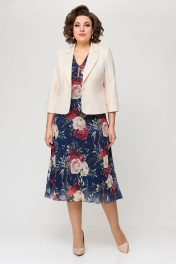 Жакет, платье Slaviaelit 166 пудровый+т.синий_цветы