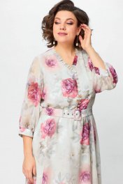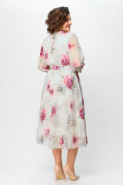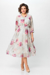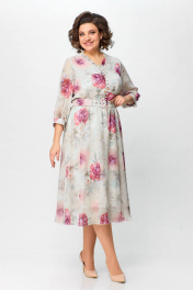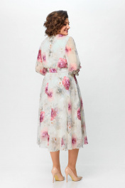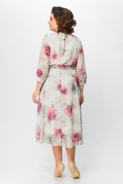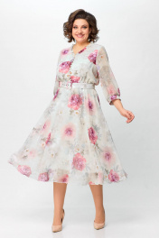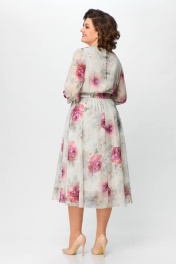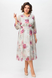 Платье женское приталенного силуэта с юбкой покроя "полусолнце", выполнено из шифона. V-образный вырез горловины отделан рюшей, застёжка на руликовые петли и пуговицы. Рукав втачной длиной 3/4, низ на манжете с эластичной вставкой. Линия талии на резинке. Возможно отличие фото по оттенку, связанное с разной цветопередачей монитора! Длина платья по центру спинки: р.48,50,52 - 123 см, р54,56 - 126 см (допуск (+-) 2см) Длина рукава с манжетой: р.48,50,52 - 48см, р.54,56 - 49 см (допуск (+-) 1см) Максимальная ширина манжеты 1/2: р.48 - 16,5см, р.50 - 17см, р.52 - 17,5см, р.54 - 18см, р.56 - 18,5см (допуск (+-) 1см) Ширина рукава под проймой 1/2: р.48 - 20,5см, р.52 - 21,5см. р.52 - 22,5см. р.54 - 23,5см, р.56 - 24,5см (допуск (+-) 1см) Ширина платья по линии груди 1/2: р.48 - 54см, р.50 - 56см, р.52 - 58см, р.54 - 60см, р.56 - 62см (допуск (+-) 1см) Макс.ширина платья по талии 1/2: р.48 - 50см, р.50 - 52см, р.52 - 54см, р.54 - 56см, р.56 - 58см (допуск (+-) 1см) Ширина платья по линии бёдер(в подкладке) 1/2: р.48 - 58см, р.50 - 60см, р.52 - 62см, р.54 - 64см, р.56 - 66см (допуск (+-) 1см) Ширина платья по линии бёдер 1/2( полусолнце): р.48 - 79см, р.50 - 81см, р.52 - 83см, р.54 - 85см, р.56 - 87см (допуск (+-) 2см)