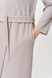 Платье женское прямого силуэта, выполнено из трикотажного полотна (состав: вискоза 65%, полиэстер 30%, эластан 5%), без подкладки, с карманами в боковых швах. Платье состоит из юбки и лифа, с отлетным низом и кулисой по линии талии, с резинкой и поясом завязкой для регулирования объема. Лиф и юбка спинки цельнокроеные. Лиф переда с нагрудными вытачками из бокового шва, юбка переда состоит из двух частей, с отлетной планкой (шир.12 см) в косом рельефе и разрезом длиной 35см по центру юбки. Рукав втачной, одношовный полной длины. Воротник высокая стойка(9см) с застежкой на металлическую молнию длиной 30см. *Возможно отличие фото по оттенку связанной с разной цветопередачей монитора. Длина платья по центру спинки р.48-52-116см. р.54-58-119см (допуск(+-)1см) Длина рукава р.48-52-58см, р.54-58-59см (допуск(+-)1см) Обхват груди: р.48-106см, р.50-110см,р.52-114см, р.54-118см, р.56-122см, р.58-126см (допуск(+-)1см) Обхват талии: р.48-104см, р.50-108см, р.52-112см, р.54-116см, р.56-120см, р.58-124см (допуск(+-)1см) Обхват бедер: р.48-112см, р.50-116см, р.52-120см, р.54-124см, р.56-128см, р.58-132см (допуск(+-)1см) Ширина рукава под проймой : р.48-34см, р.50-36см, р.50-38см, р.54-40см, р.56-42см, р.58-43см (допуск(+-)0,5см) Ширина плеча: р.48-52-10,5см, р.54-58-12см(допуск(+-)0,5см) Ширина спинки р.48-52-38,5см, р.54-58-44см (допуск(+-)1см)