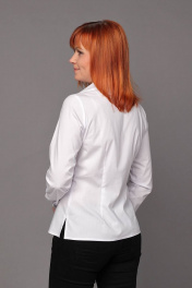 Круглогодичная белая блуза из текстиля с разрезами и талевыми вытачками Соджи 456 белый