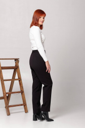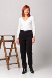 Брюки женские , классические, со стрелками. Спинка с талевой вытачкой. Пояс притачной, с застежкой на петлю - пуговицу и резинкой в области спинки. Длина брюк по боковому шву с поясом - 104 см. Длина брюк по шаговому шву - 76 см. Ширина брюк винзу: - размер 46 - 37 см; - размер 48 - 37,6 см; - размер 50 - 38,2 см; - размер 52 - 38,8 см; - размер 54 - 39,4 см; - рамзер 56 - 40 см.