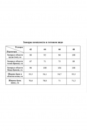 Комплект молодёжный. Топ прямого силуэта. Перед с нагрудными вытачками из боковых швов. Спинка с отрезной кокеткой. Нижняя часть спинки с запахом. По спинке, в области горловины, застёжка на навесную петлю и пуговицу Длина топа по спинке - 44,5 см (+/- 0,5 см). Брюки - клёш, с отрезной кокеткой-поясом. Перед с карманами с наклонным входом. Спинка с вытачками. По стрелкам прошита отделочная строчка. Брюки со средней посадкой. Подгибка низа брюк - 5 см. Длина брюк по боковому шву с поясом - 105 см (+/- 0,5 см.)