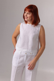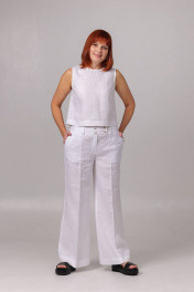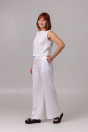 Костюм из льна топ и брюки клеш из текстиля Соджи 619 белый