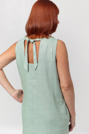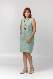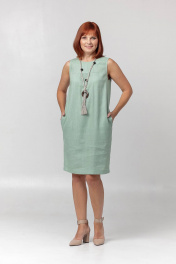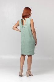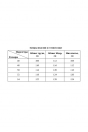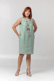 Платье женское, силуэта - "бочонок". Перед с нагрудной вытачкой, перенесенной в подрез. Спинка со средним швом и прямоугольным вырезом с заваязками в области горловины. В боковых швах - карманы. Украшение в комплекте. Длина изделия: размер 46 - 93 см; размер 48 - 94 см; размер 50 - 95 см; размеры 52,54 - 96 см.