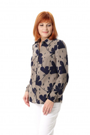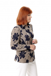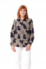 Блуза женская прямого силуэта. Перед с нагрудной вытачкой из проймы, с центральной застёжкой на петли-пуговицы. Воротник - рубашечного типа на стойке. Рукав втачной, присборенный по окату. Низ рукава обработан манжетой с застежкой на петлю-пуговицу, имеется прорешка и заложены две складки. Низ спинки оформлен выпуклой линией, в боковых швах - разрезы. Длина рукава с манжетой - 64 см. Длина изделия: размер 44 -48 - 67 см; размер 50 - 68 см; размер 52 - 69 см; размер 54 - 70 см.