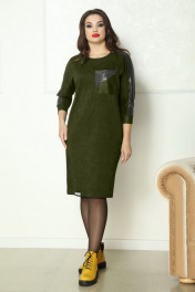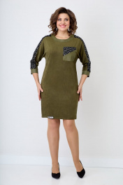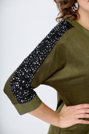 Платье из хлопка с пайетками и реглан-рукавами Solomeya Lux 763 хаки
