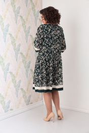 Платье женское, свободного силуэта из шифона на трикотажной подкладке. Рукава втачные, ниже уровня локтя, по низу пришиты манжеты из 2-х видов ткани, по манжетам застрочены горизонтальные складки. По платью ниже линии талии выполнен подрез, нижняя часть со сборкой, по низу пришита отделочная деталь с 3-мя складками из 2-х видов ткани. Горловина обработана планкой из однотонной ткани, по переду горловины пришит заготовленный бантик с украшением. 48 Длина изделия - 102см, Длина рукава - 40см, Ширина по груди - 112см, Ширина по талии - 108см, Ширина по бедрам - 124см, 50 Длина изделия - 102см, Длина рукава - 40см, Ширина по груди - 116см, Ширина по талии - 112см, Ширина по бедрам - 128см, 52 Длина изделия - 102см, Длина рукава - 40см, Ширина по груди - 120см, Ширина по талии - 116см, Ширина по бедрам - 132см, 54 Длина изделия - 104см, Длина рукава - 42см, Ширина по груди - 124см, Ширина по талии - 120см, Ширина по бедрам - 136см, 56 Длина изделия - 104см, Длина рукава - 42см, Ширина по груди - 128см, Ширина по талии - 124см, Ширина по бедрам - 140см,