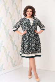 Платье из шифона с бантом и складками на талии Solomeya Lux 899 зеленый-белый