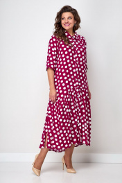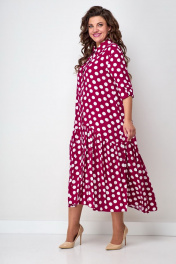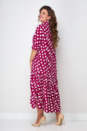 Платье бохо с воланом и застежкой на пуговицах Solomeya Lux 812D малина-горох