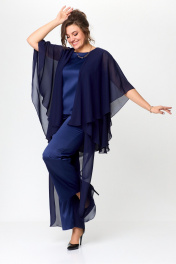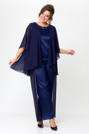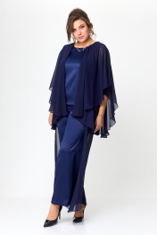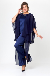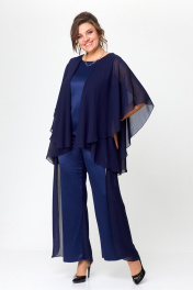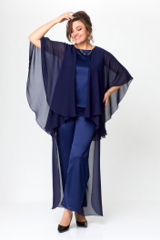 Нарядный комплект блузы и брюк с пайетками и отделкой Solomeya Lux 960 синий