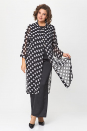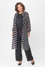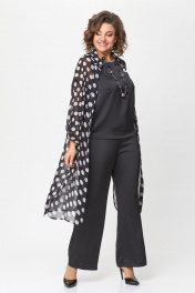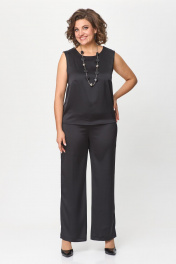 Нарядный брючный костюм из шифона и ткани CREP VELVET Solomeya Lux 963 черный